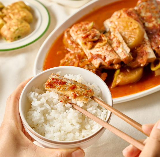 갈치조림은 밥도둑이라는 말이 딱 어울리는 메뉴입니다. 양념이 자박하게 밴 무와 촉촉한 갈치살 한 점이면 밥 한 공기는 순식간이죠.